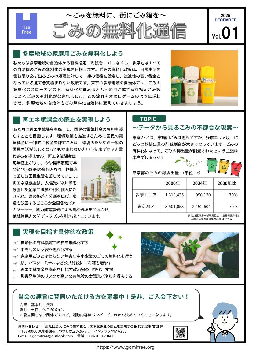 2025.12 「ごみの無料化通信 Vol.1」を発行